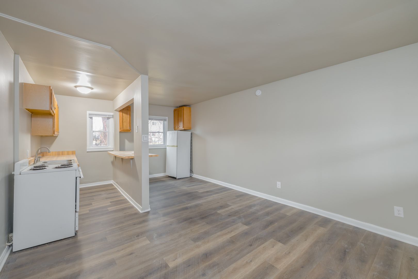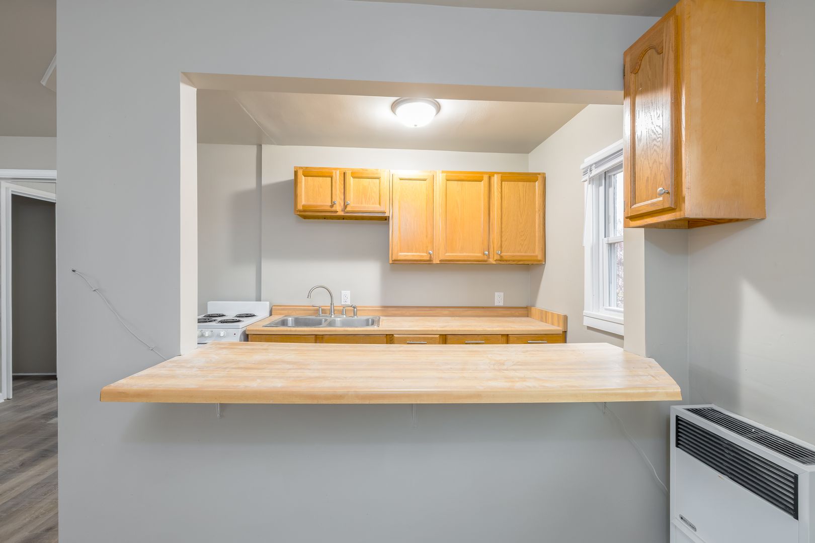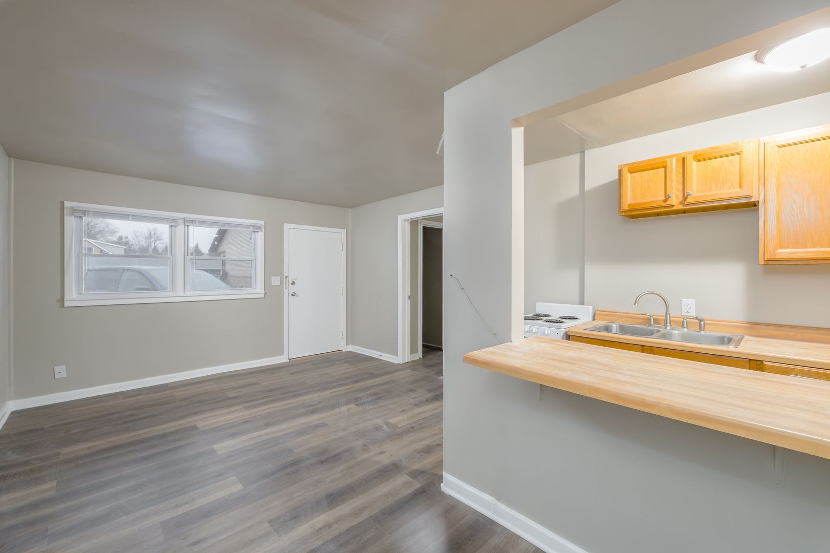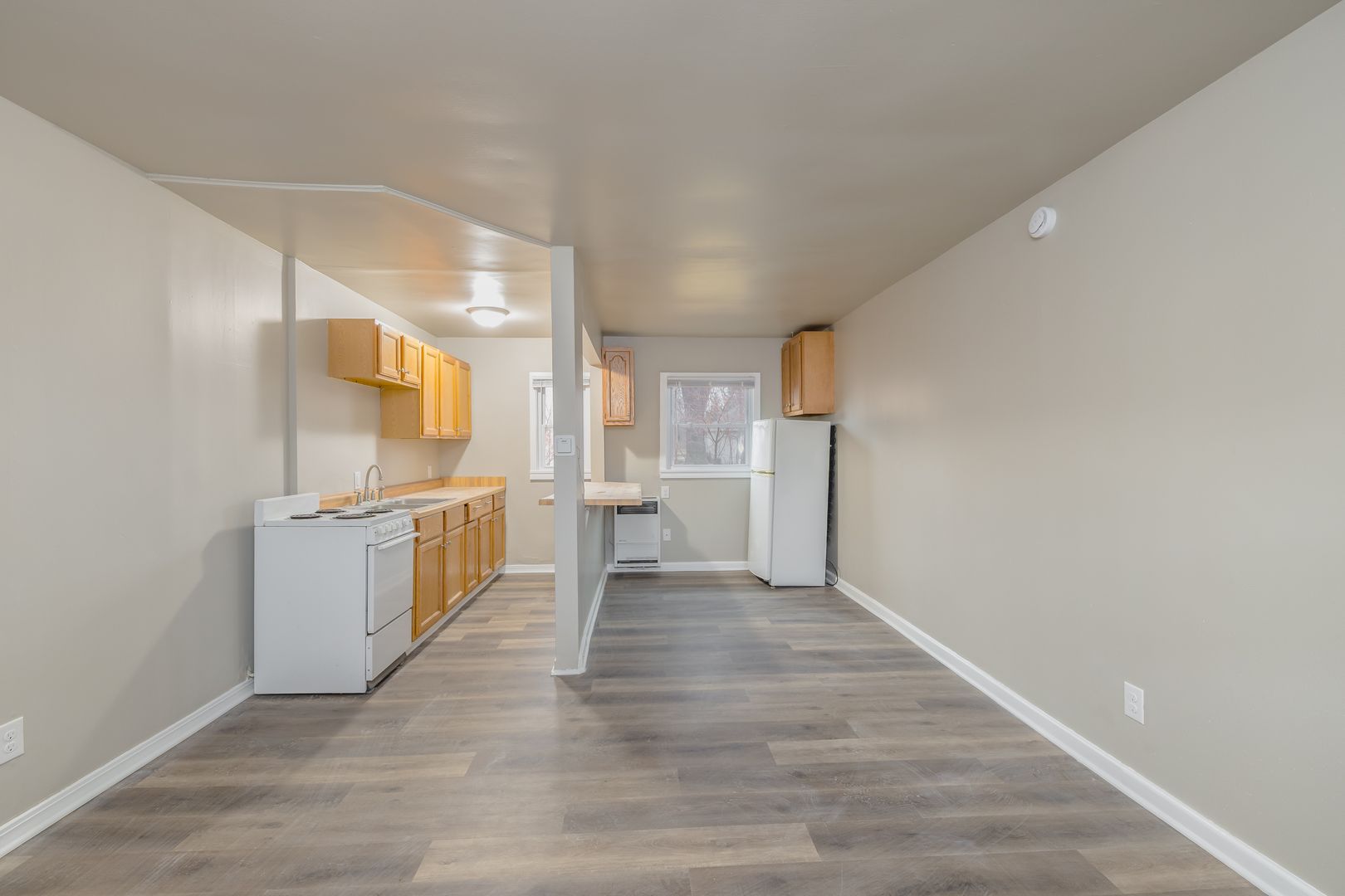 One bedroom, one bath unit. Rent is $850/month. Security deposit is one month's rent. Electric is included in rent. Flat charge/month for well water/sewer. Gas is a shared expense divided up by square footage of the unit. Pets are welcome with a one time pet fee of $400 and $50/month for pet rent for the first pet, any subsequent pets are $25/month in pet rent. Lawncare and snow removal are done by vendors. Coin operated laundry machines on site, each tenant will receive a key to the laundry room.
